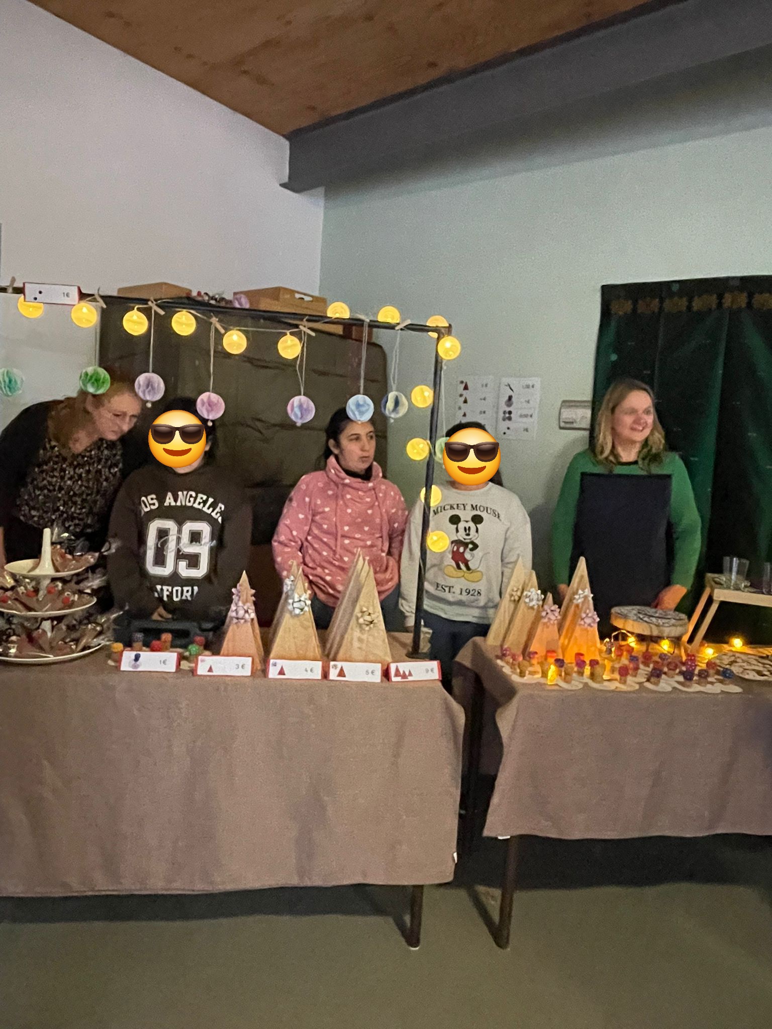 An liebevoll geschmückten Tischen präsentierten die Schülerinnen und Schüler allerhand selbstgemachte Dinge wie z.B. Dekorationen, Schleckereien, Handgemachte Weihnachtskarten, aber auch Waffeln, Würste, Stockbrot und vieles mehr.