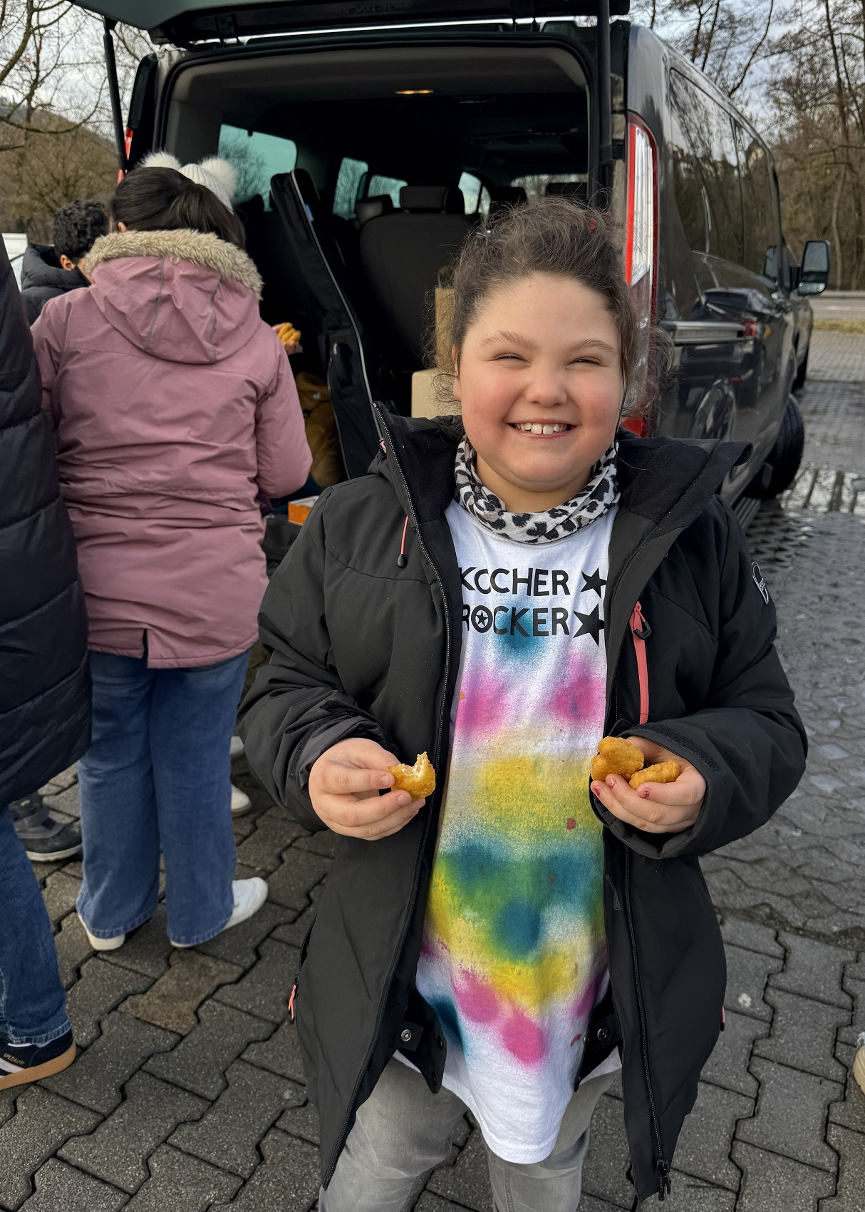 Alle waren voller Spannung und Vorfreude vor dem ersten Auftritt außerhalb der Schule, auf einer richtigen Bühne und vor fremden Publikum.